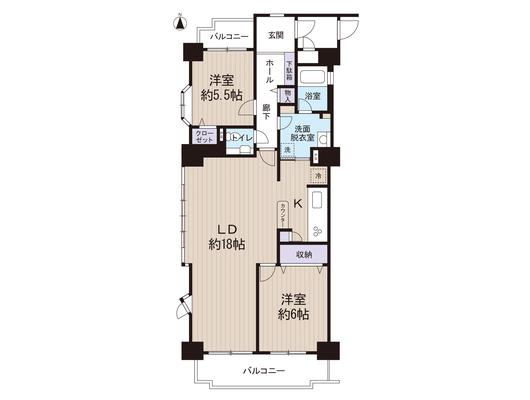 専有面積88.59㎡のゆとりある3LDK+WIC。9階部分・南向きにつき、日当たりと眺望の良さが魅力です。2住戸に1台のエレベーター配置で、待ち時間が少ない点もポイント。