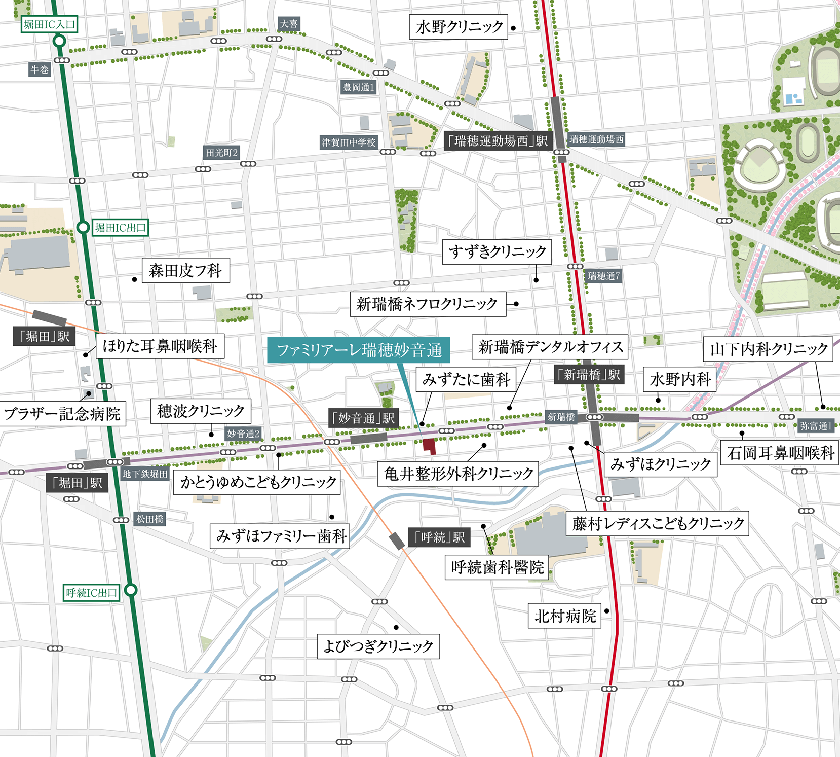 徒歩圏内に地域に根ざした専門医院や総合病院が充実。病気や怪我は、いつ、どんなときに起きるかわからないからこそ、近くにあると安心を実感できます。