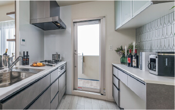一時的なゴミ出しにも便利な勝手口付きキッチン。