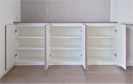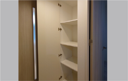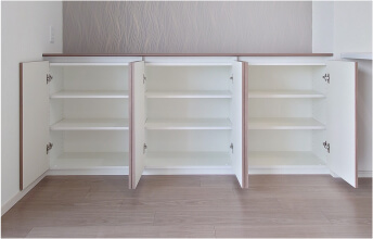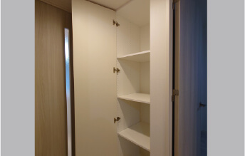 廊下収納として物入を2箇所に設置。掃除用具や季節用品、遊具の保管場所などに使えます。