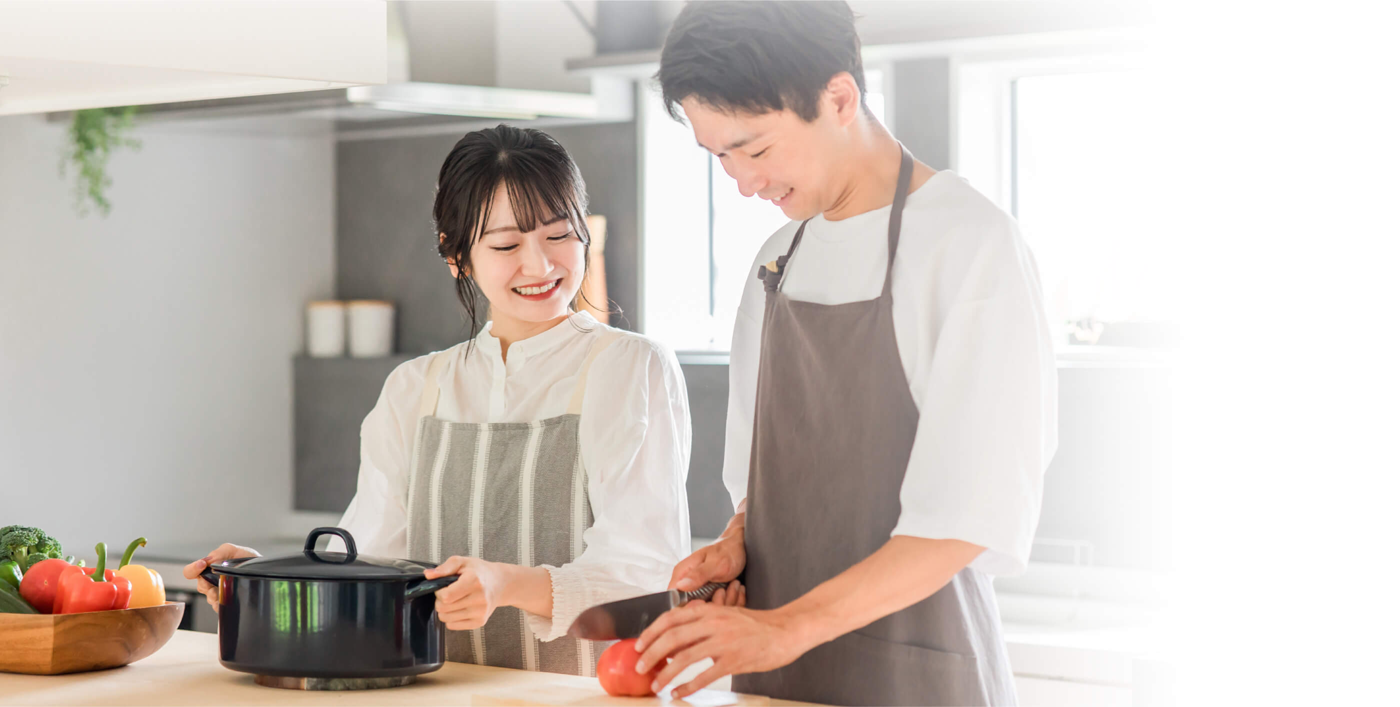 コンロまわりの壁面には、熱に強く、見た目にも美しいキッチンパネルを採用。油汚れも簡単に拭き取れます。