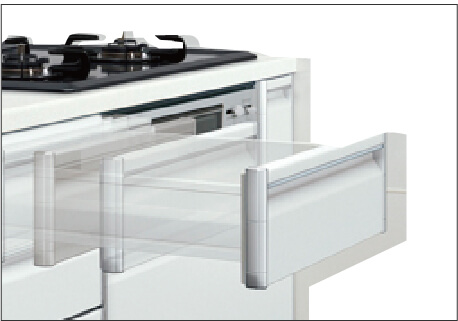 スライド収納収納物が一目で見渡せ、出し入れも便利なスライド収納。扉がゆっくりと閉じるソフトクローズ機能付です。