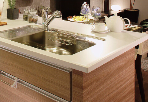 人造大理石天板汚れにくくキズつきにくい人造大理石を採用。毎日のお手入れが簡単です。