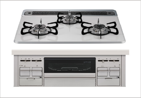 トップコンロ美しくお手入れも容易で、吹きこぼれもサッと一拭き。便利な両面焼きグリルも備えています。
