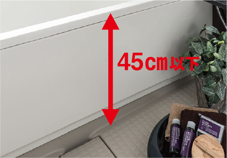 またぎの高さを抑えた低床タイプの浴槽を採用しました。お子様やご高齢の方にも安心、快適に入浴していただけるよう配慮したバリアフリー仕様です。
