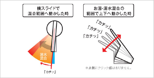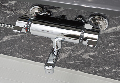 お好みの温度にダイヤルを合わせるだけで、湯温を自動的に設定できるサーモ式混合水栓を採用しました。