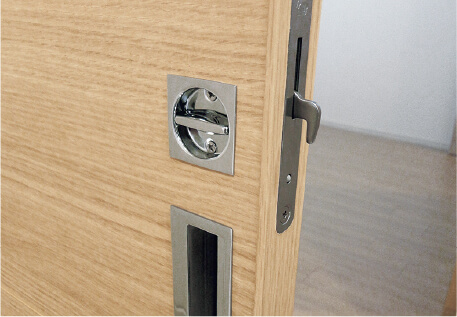 洗面室の扉には、内側から閉められる鍵を設置。いきなりドアが開く心配がなく、来客時にも安心です。
