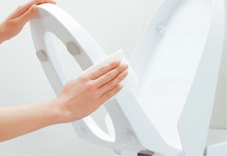 便座のサイドの継ぎ目がなく、新素材により気になる便座裏の汚れもスムーズに拭き取れ、掃除がラクになります。