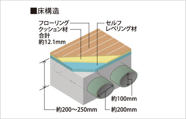 水の表面張力を壊す効果で乾きやすい床です。また同一方向にそろうグリッド加工によりお掃除がしやすいのも特徴です。