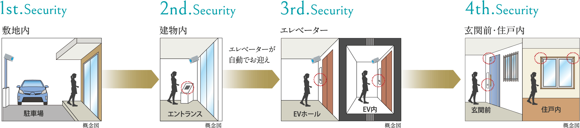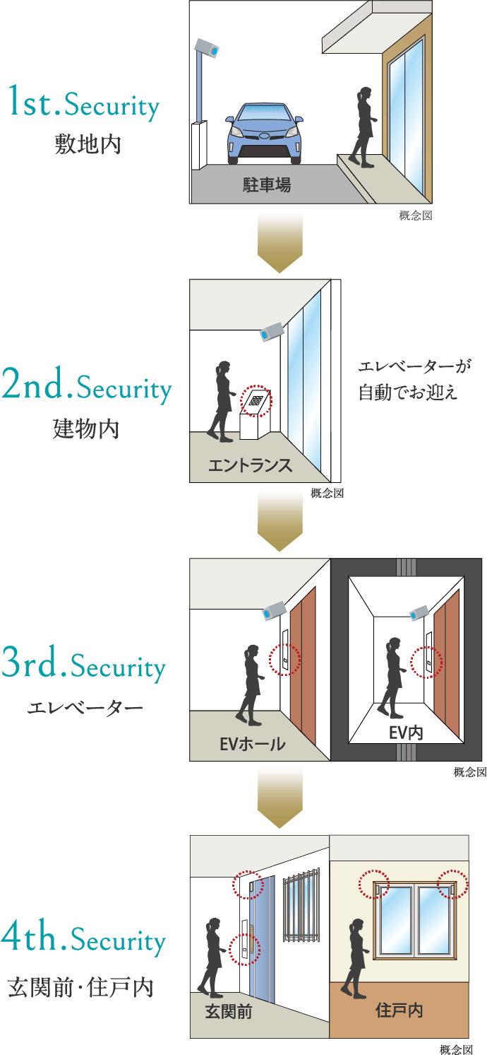 ※防犯カメラ等各種設備はあくまでも抑止力として効果を期待するもので、不審者の侵入を含め完全な犯罪の防止や犯人の特定等をお約束するものではありません。