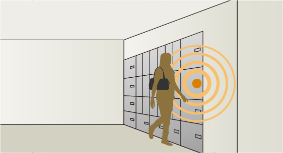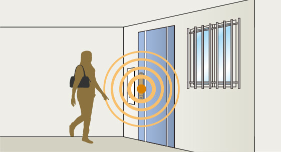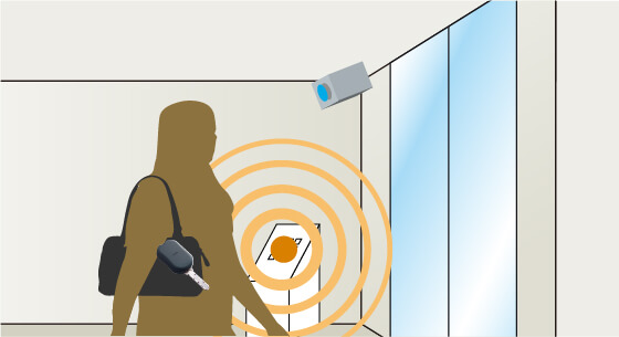ハンズフリーで共用部リーダーがRaccessキーを感知し、オートドアの解錠ができるため、スムーズに入館できます。