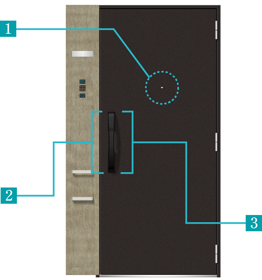 外からの覗き見を防ぐ裏蓋付ドアアイ。廻り止めタイプなので、外側から外しにくい仕様です。