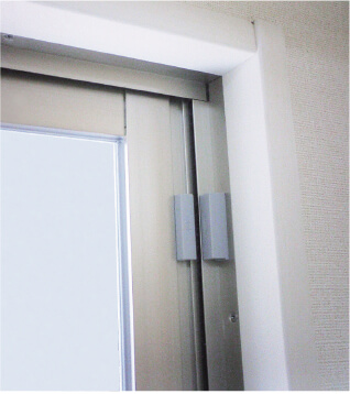 玄関ドア、共用廊下に面する窓、及び2階と13階のすべての窓(A・Dタイプ浴室窓を除く)にマグネットセンサーを設置。就寝時・外出時、窓や玄関に開閉異常が見つかった場合、警報が鳴ると同時に警備会社に通報します。