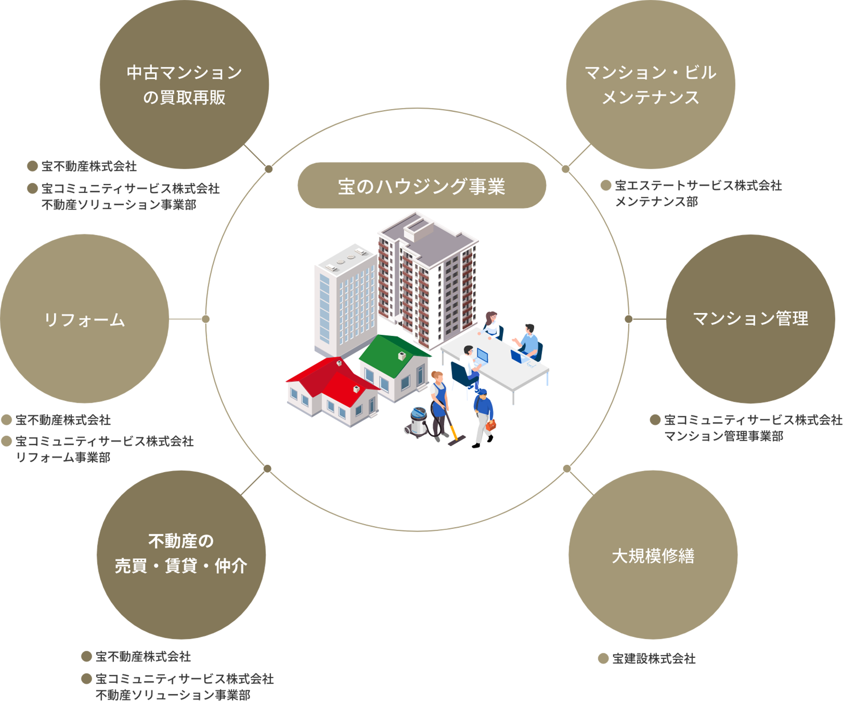 宝グループでは新築分譲マンション・新築戸建住宅の開発分譲・仲介・売買・リフォームから資産活用のご相談まで、不動産のトータルサービスを行っています。