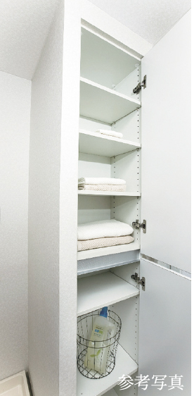 バスタオルや洗剤のストックなどがスマートに収納できるスペースを洗面室内に確保しました。