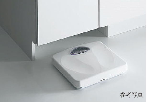 洗面化粧台下部のスペースを活かし、ヘルスメーターをスッキリ収納できます。