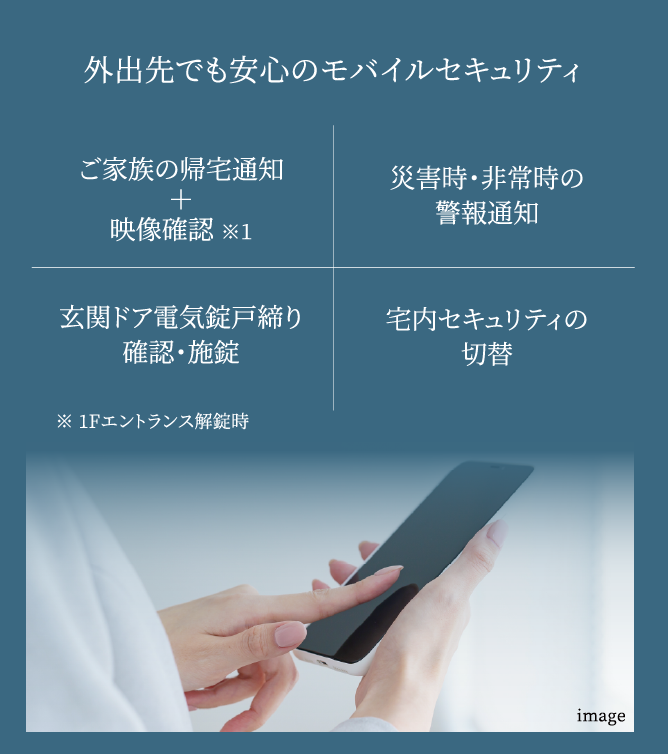 エレベーターも受信器がハンズフリーキーを認証することでセキュリティが解錠され、自宅階まで自動的に運転されます。また、エレベーター自体を制御することで、目的階以外への出入り及び不審者の侵入を抑止するオートロック機能としても威力を発揮します。