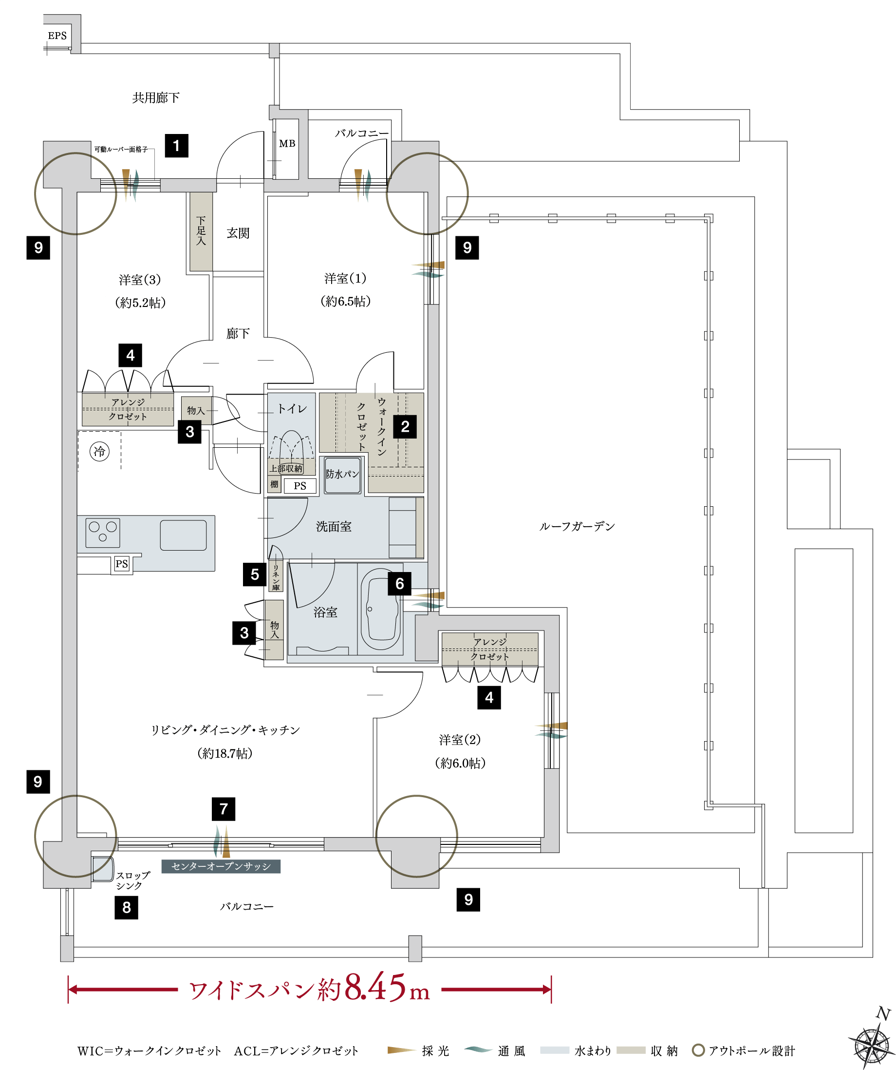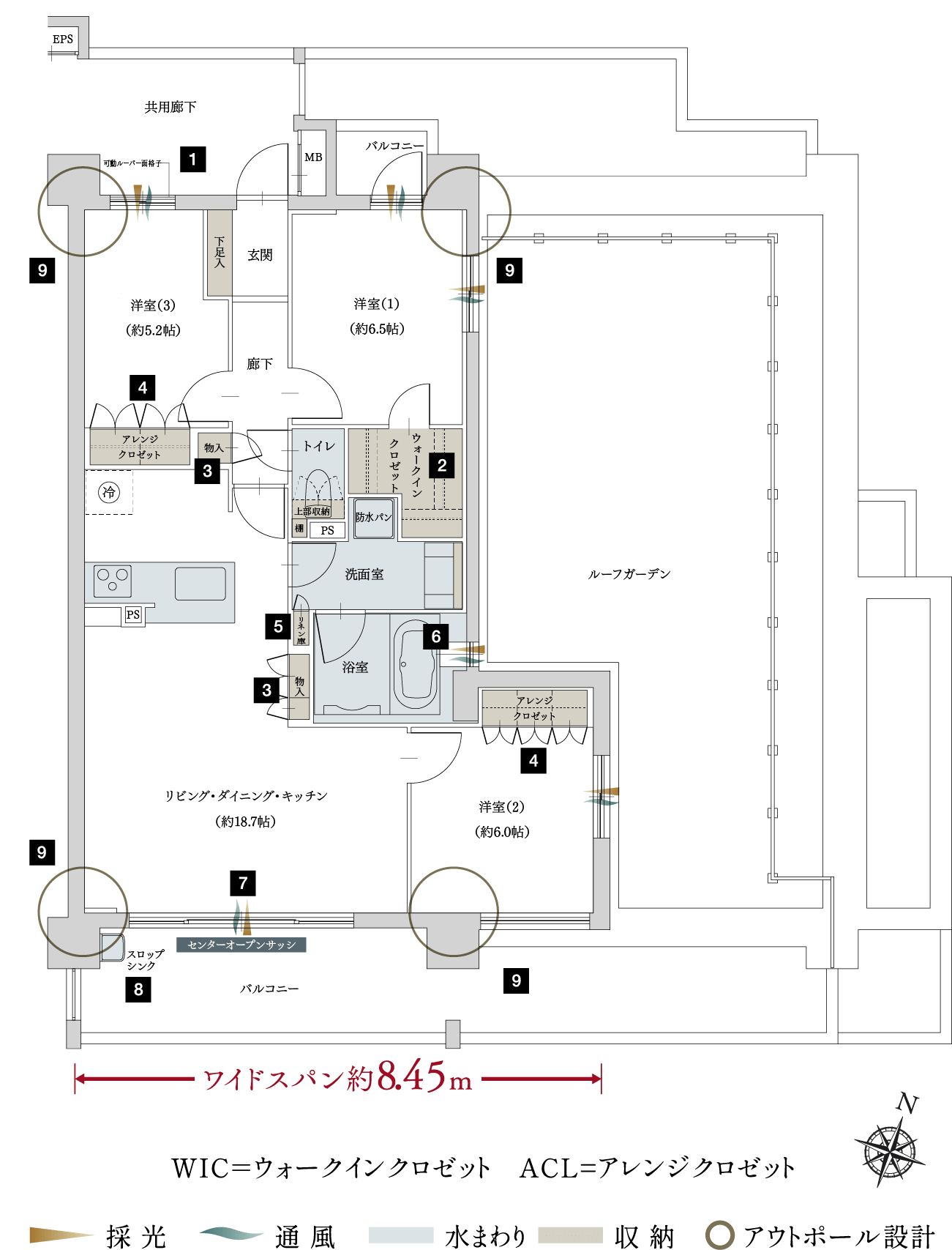 ルーフガーデン面積/44.44m²(約13.44坪)
